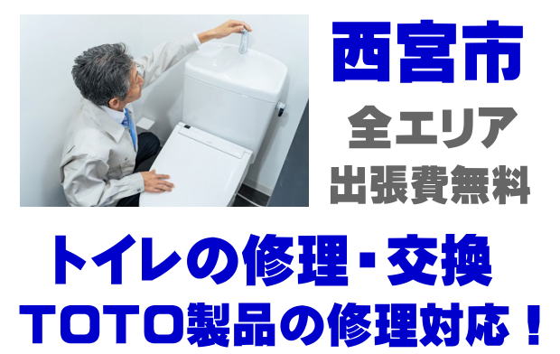 西宮市でTOTO製トイレの修理業者をお探しなら当社までお気軽にお問い合わせください。トイレ便器の水漏れ、タンクの故障、便座の修理などTOTO製トイレに関するトラブルなら何でもご相談ください。